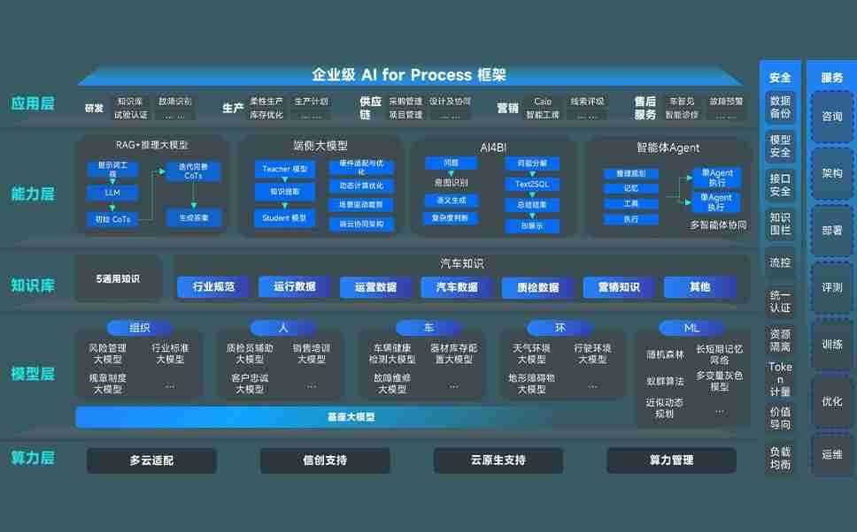 端到端的一站式AI工作空间深度融合了从企业战略规划到日常经营的全流程业务板块,,定向解决车企内部领域多、、部门多、、链条长、、、场景碎片化等难题,,支持车企快速构建以AI为核心的生产力写作体系,,,,实现任务执行与AI能力的无缝集成与交互